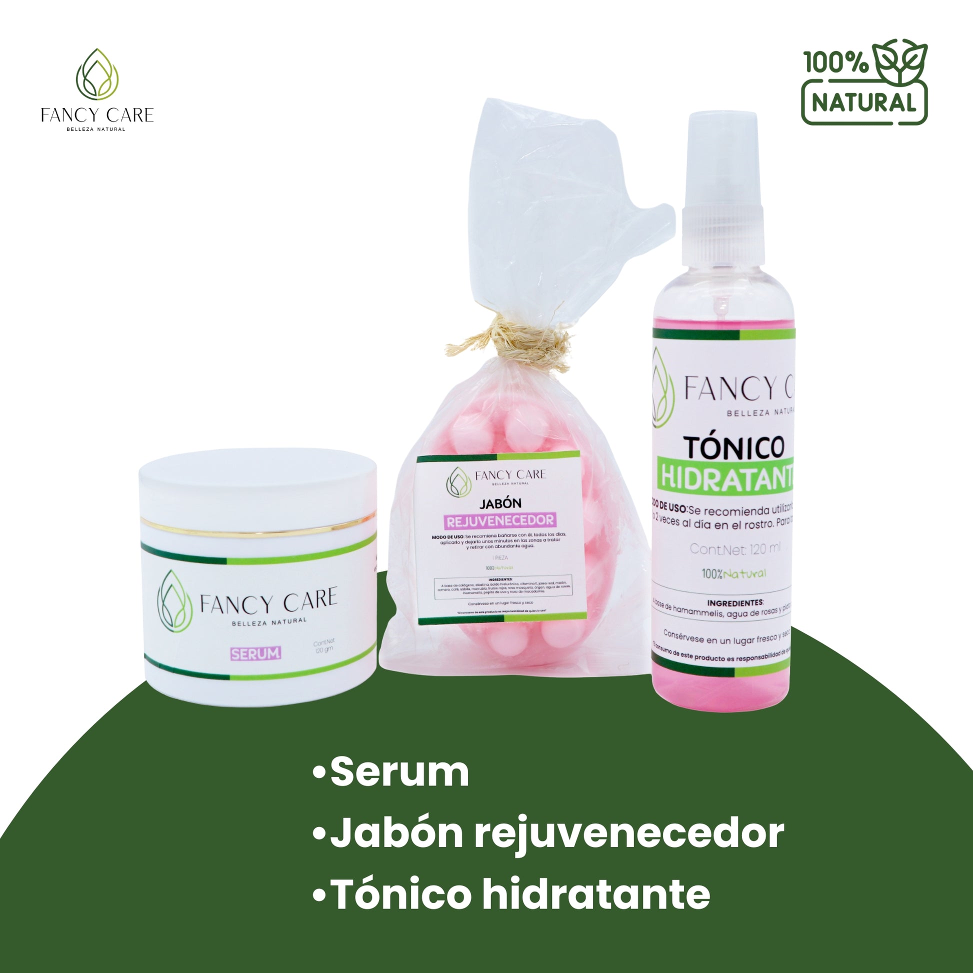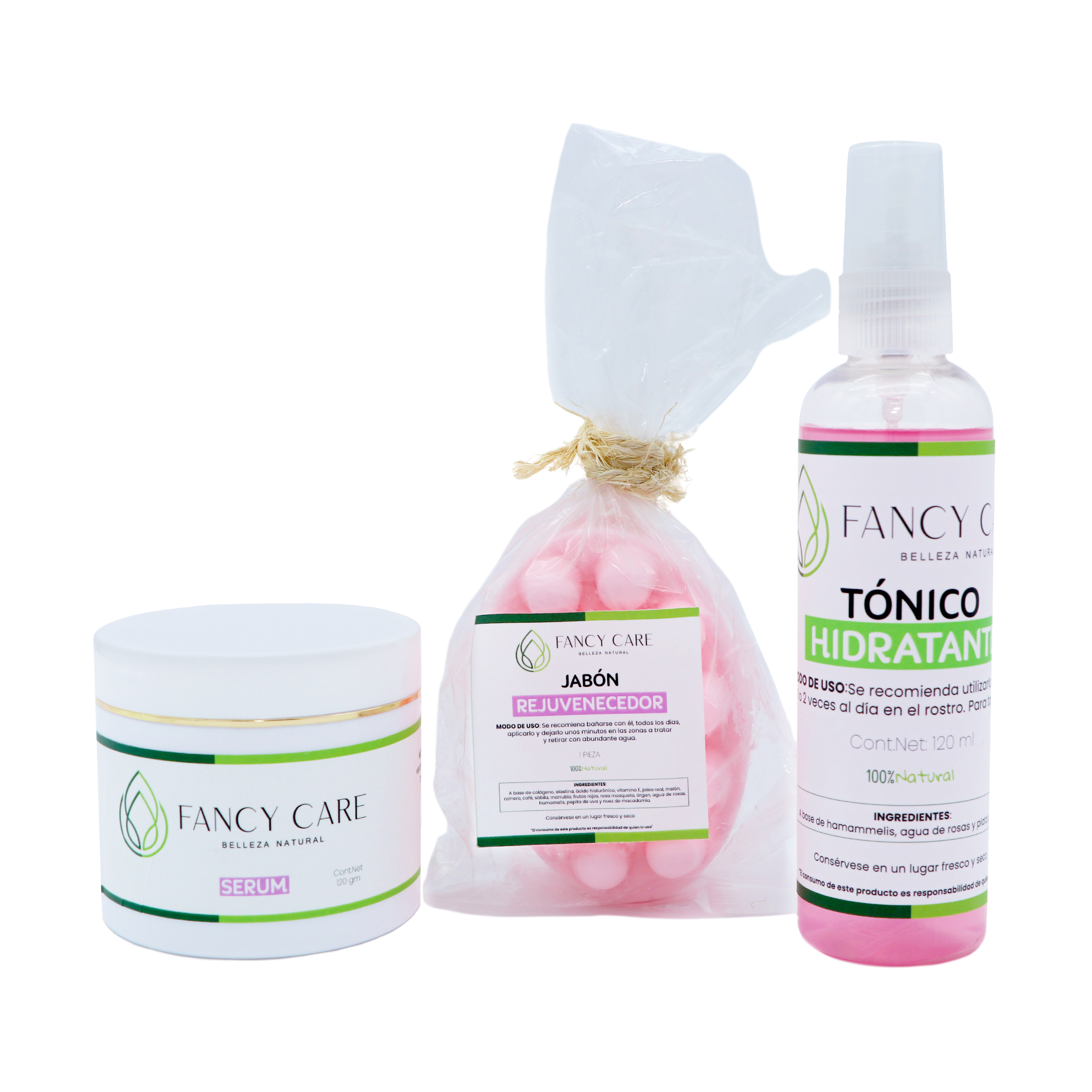 Contenido: Serum, Jabón rejuvenecedor y Tónico hidratante.